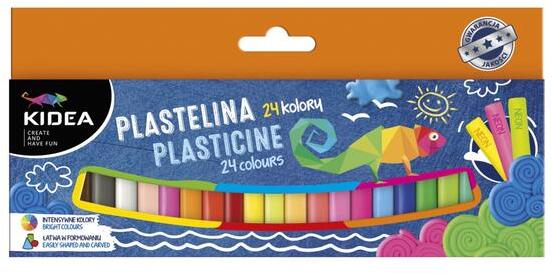 A Kidea 24 db-os színes gyurmakészlet  kiváló minőségű, élénk színű, henger alakú gyurmái könnyen formázhatók, nem tapadnak a bőrre.