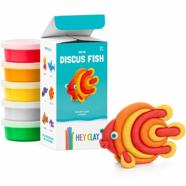 Ebből a  Hey Clay gyurma készletből egy kedves Diszkoszhalat  készíthetsz el, aki legújabb, saját készítésű barátod és játszópajtásod lehet. A készletben 5 tégely gyurmát találsz, a megfelelő színekben, ezekből alkothatod meg a kis állatodat az applikáció segítségével.   Szerezd be az összes Hey Clay gyurma készletet , hogy polcaidon minél több vidám, színes figura díszelegjen, és minél izgalmasabb legyen a játék velük!