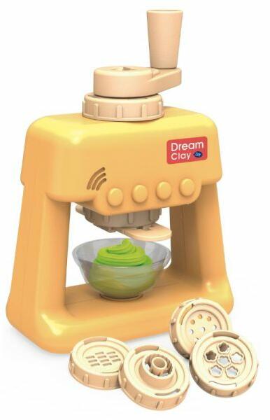 Süssünk, süssünk valamit... gyurmából!Ezzel a gyurmaformázó konyhagéppel a gyerekek különleges gyurmakreációkat hozhatnak létre, amelyekkel megnyithatják saját, gyurmafinomságokat áruló boltjukat vagy éttermüket a gyerekszobában. A dobozban egy konyhai gépnek kinéző gyurmaformázó gép, különböző mintájú, a gépbe egyszerűen beilleszthető tárcsák, valamint 12 különböző színű gyurma kapott helyet, amelyekből a gyerekek szinte bármit megformázhatnak, amit csak szeretnének. A formázógép használata egyszerű, így akár már ovisok is könnyedén használhatják. A gyurmázás amellett, hogy stresszoldó hatású tevékenység, fejleszti a gyerekek taktilis és vizuális érzékelését, finommotorikáját, szem-kéz koordinációját és kreativitását. A dobozban található gyurmák könnyen formázhatók. A termék környezetbarát anyagból készült, így jó választás a környezettudatos, globálisan gondolkodó családoknak. A színek és díszítések eltérhetnek a képen láthatótól. A gyurmaformázó gép mérete: 11 x 5,5 x 15 cmCsomagolás mérete: 19 x 32 x 9 cm